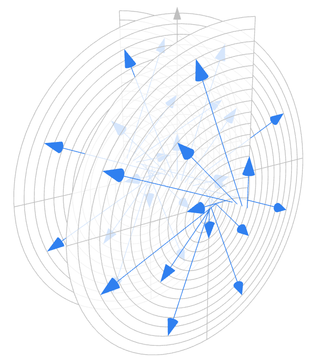 Imagine I’m stood in the middle of my garden, I have my dog on a retractable lead which is set to freely extend or retract, and I’m looking at the back fence. My dog starts off by feet and then wanders off to smell something somewhere in the garden. I want to keep an eye on what she’s up to, so I turn around to keep looking at her. When she stops to smell, I will have turned by so much of a full turn, and the lead will be at a particular length. If I measure my turn as if I have always turned the same way (clockwise or anti-clockwise), I can describe any point in the garden uniquely by how much I’ve turned and how long the lead is. These are polar co-ordinates.