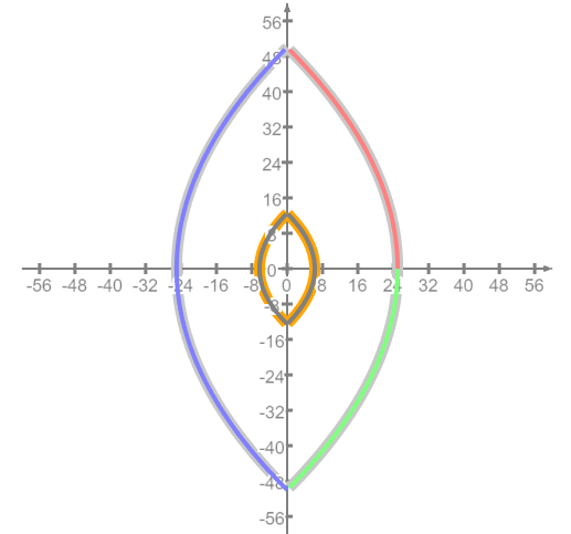| Cartesian | Equivalent polar | Polar squared | Polar squared without full turns | |||||||